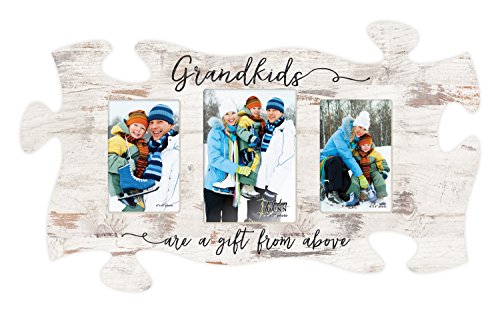 Grandkids Are A Gift From Above White Wash 22 x 13 Inch Wood Puzzle Wall Plaque Photo Frame