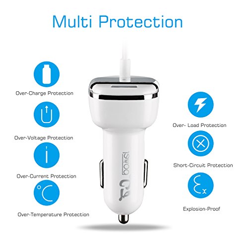 Faster Charging - Input:12-24V; Output: DC 5V 3.4A or 17W. It provide the fastest possible charge up to 3.4 amps to charge your phone and other mobile devices simultaneously on the road.