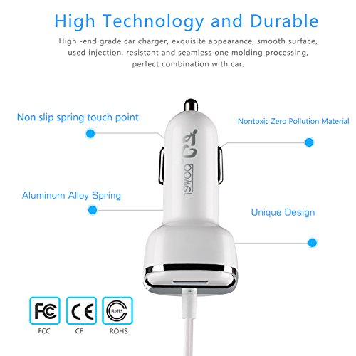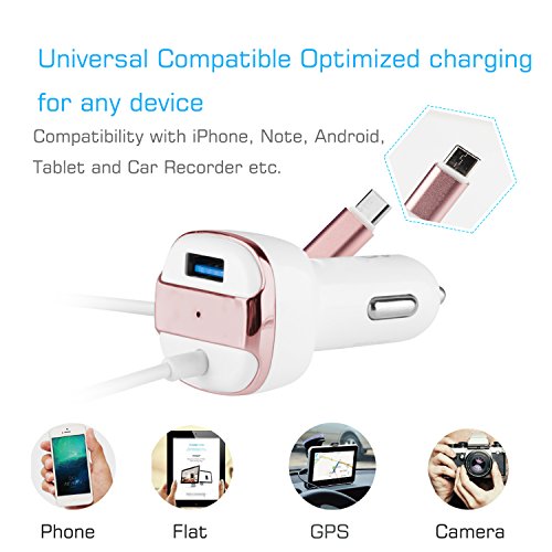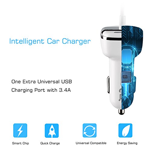 Galaxy S8 / Galaxy S8 Plus Car Charger, AnoKe USB-C 3.4A /17W Rapid Dual Quick Car Charger Adapter with Coiled USB Cable For Galaxy S8 / Galaxy S8 Plus Type C Car Charger - White