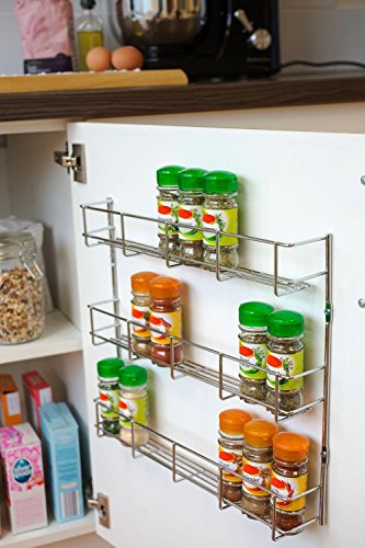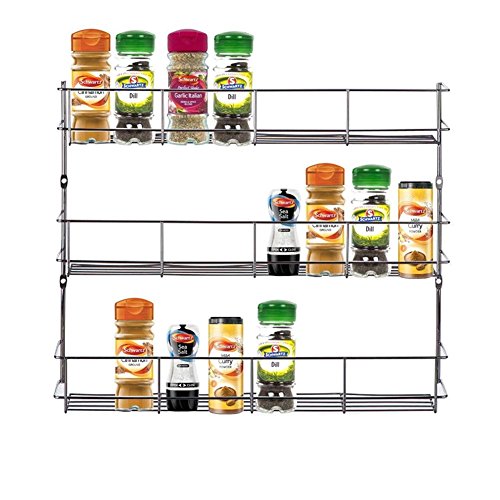 -. Brand : Yontree -. Feature : 1-5 Tiers ,Choose to fit your own space / Line your Spice Jars , No more confusion . / Save Space ,Each Tier can hold 8 jars / Detached Design ,You can fix the interval between two tiers to fit your jar's height . / Dimensions: 13.8 Inches High X 16 Inches Wide Each Tier -. Label : Yontree -. Manufacturer : Yontree -. ProductGroup : Kitchen -. ProductTypeName : KITCHEN -. Publisher : Yontree -. Studio : Yontree -. Title : YonTree 1 TO 5 Tiers Steel Spice Rack Herb Jar Holder Cabinet Shelf Storage Wall Organization