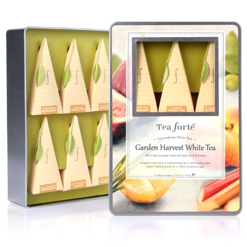 -. Feature : Six Silken Pyramid Infusers / one pyramid infuser each: Peach Rhubarb Preserve, Tupelo Honey Fig, White Cinnamon Sage, Wild Apple Ginger (2 pyramids) Tangerine Rosemary, / From the world's most beautiful gardens comes these artisan crafted varietals of health enhancing teas