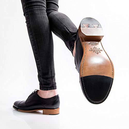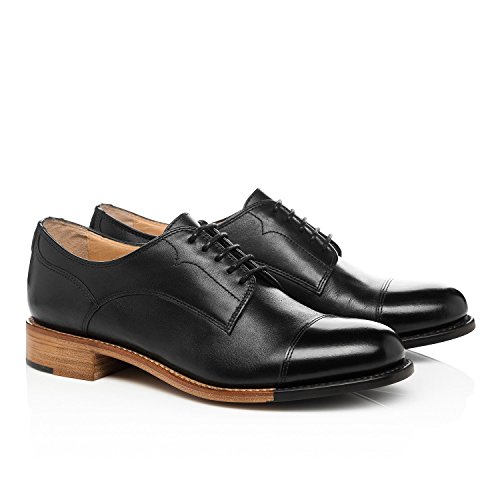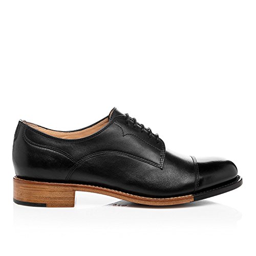 Product DescriptionBlack Italian leather toe cap oxford with hand-painted soles from The Office of Angela Scott.0