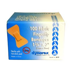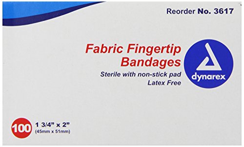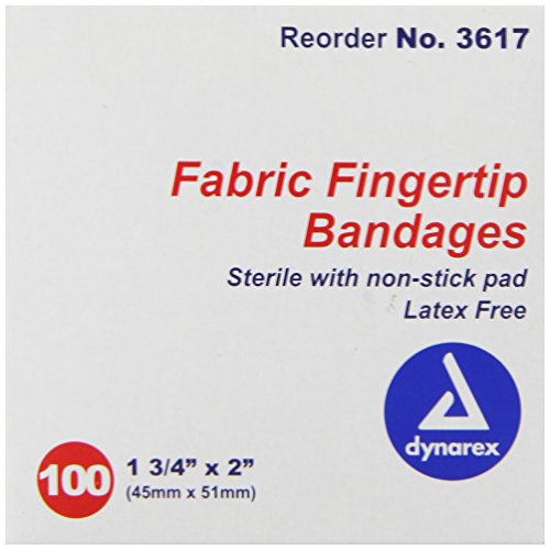 -. Title : Dynarex Adhesive Bandage, Fabric Fingertip, 1.75 Inches X 2 Inches Sterile, 100 Count