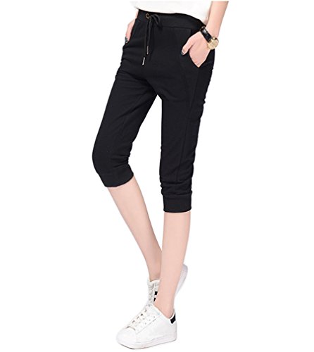 KaiDi Women's Slim Capri Pants Knee Haroun Pants Casual Running Trousers