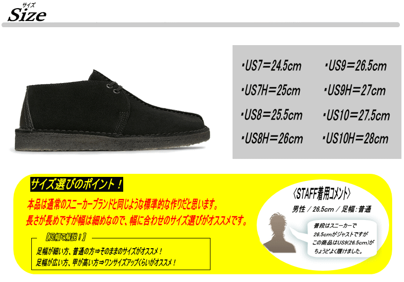 | サイズ | 作り⇒標準 【サイズ選びのポイント!】 足幅が細い方、普通の方⇒そのままのサイズがオススメ! 足幅が広い方、甲が高い方⇒ワンサイズアップくらいがオススメ! |