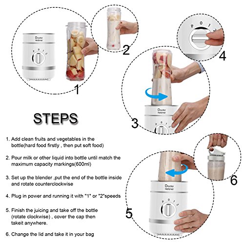 Doctor Hetzner personal blender is a kind of perfect blender which is designd with portable blender and sport bottle in one, to meet your health fast-paced lifestyle. With convenient and easy One Touch Operation, you can create juice, shakes, smoothies to enjoy at home or travel. Notice:1. Please do not use in damp or wet