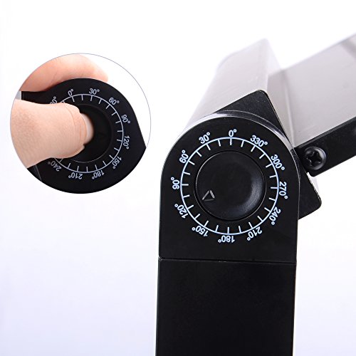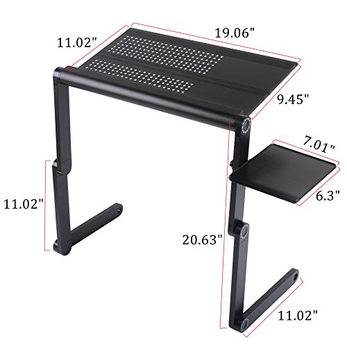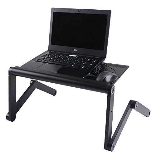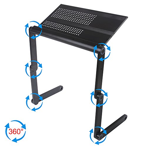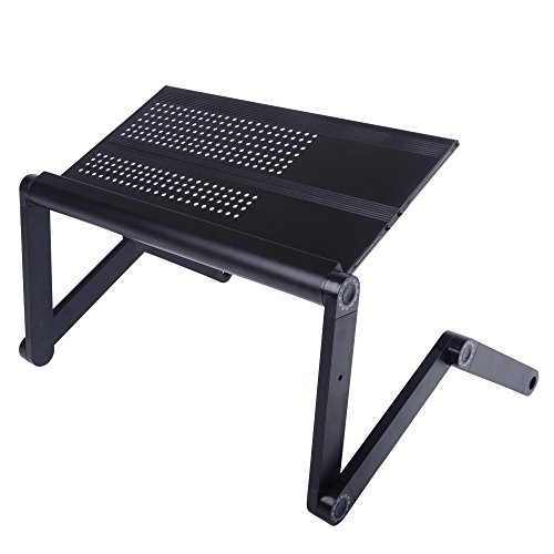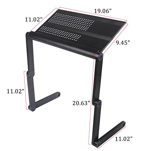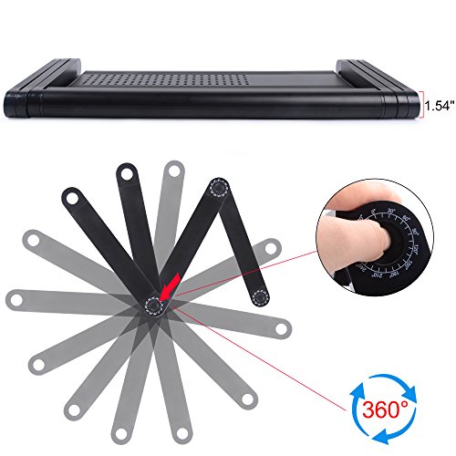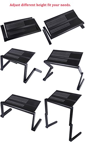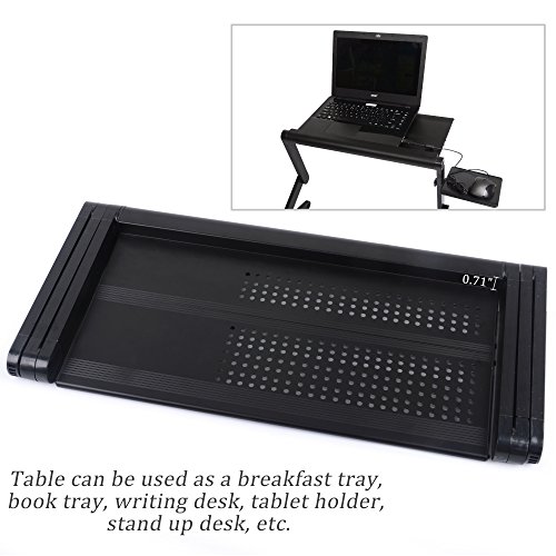 -. Binding : Office Product -. Brand : H&B Luxuries -. Color : Black -. Feature : Multifunctional Foldable Laptop Table- Can be used as a breakfast tray, book tray, writing desk, etc. / Light Weight Aluminum Tray - Makes carrying easy and holds your computer firm and steady. / Sturdy Fully Adjustable Legs- Rotate 360 degrees and lock in place at various angles. / Heat Dissipation Function- Air vented cavities design to reduce overheating on your laptop. / Dimension - 19.06" (L) × 11.02" (W) × 1.54"-20.63" (H) It can support up to 44 pounds. -. Label : Hwabond Luxuries -. Manufacturer : Hwabond Luxuries -. MPN : ALD -. PackageQuantity : 1 -. PartNumber : ALD -. ProductGroup : Office Product -. ProductTypeName : OFFICE_PRODUCTS -. Publisher : Hwabond Luxuries -. Studio : Hwabond Luxuries -. Title : Portable Adjustable Vented Laptop Desk Aluminum Lap Tray Stand