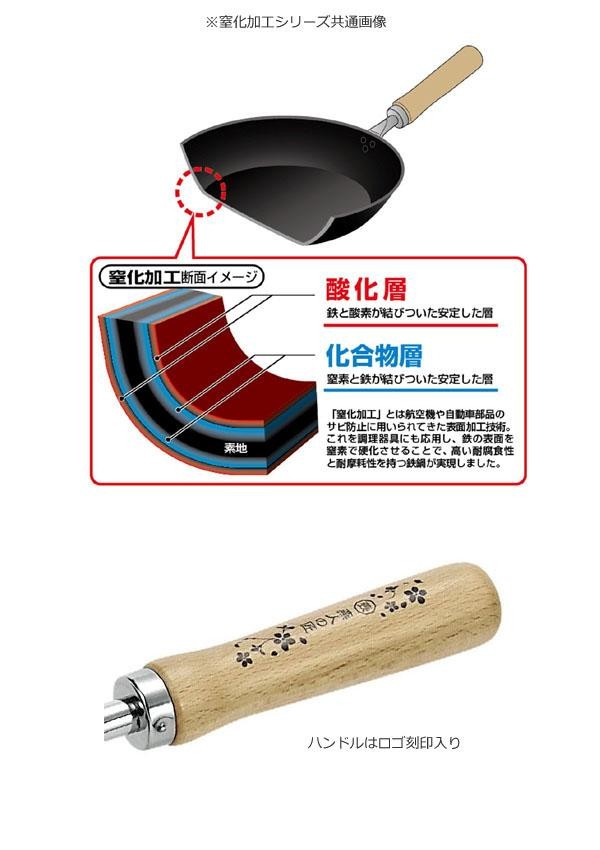 | 素材・材質 | 本体/鉄(底厚1.6mm、窒化処理) ハンドル/天然木(ブナ材、ウレタンクリア塗装) 取付金具/鉄(クロムメッキ) |