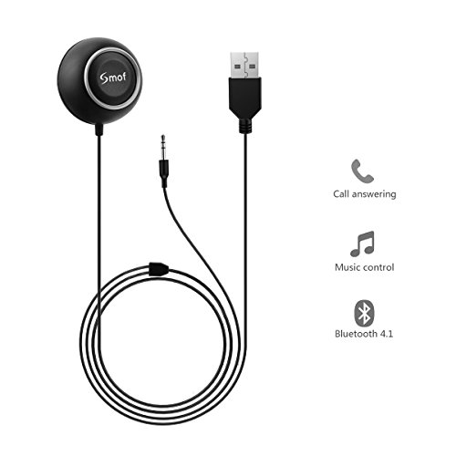Smof Bluetooth CSR4.0 Stereo Music Receiver/Hands-Free Car Kit for Car Audio System with Knob Rotatable Adjustment Built-in Mic/3.5mm Output(Black)