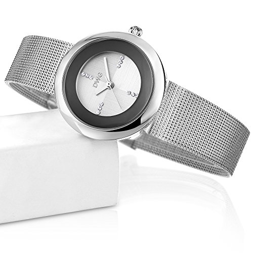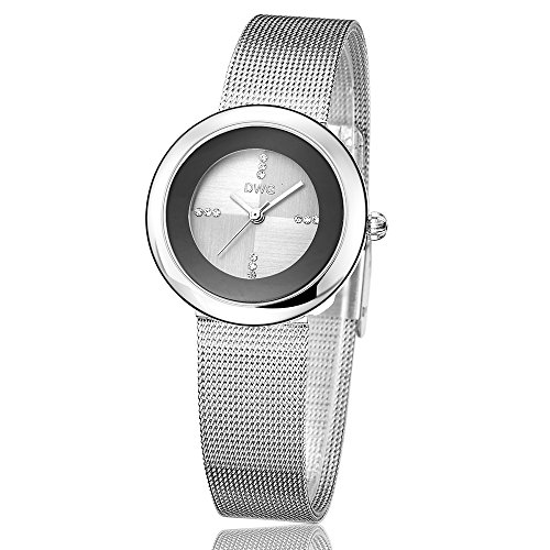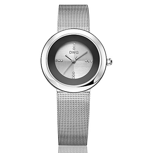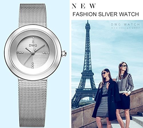 DWG 레이디스 손목시계 화이트 데이 쿼츠 귀여운 심플한 디자인 (originality)오리지날리티 (실버)