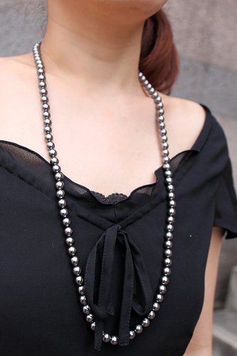Sakuya 진주 세미 롱 목걸이 세트 8mm 80cm 패펄 화이트or실버 블랙or내츄럴 귀걸이or피어스(귀걸이)