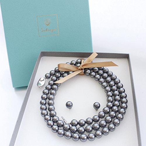 원본상품명: ?珠セミロングネックレス セット 8mm 80cm 貝パ?ル ホワイトorシルバ?ブラックorナチュラル イヤリングorピアス