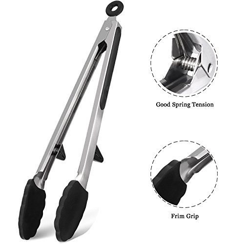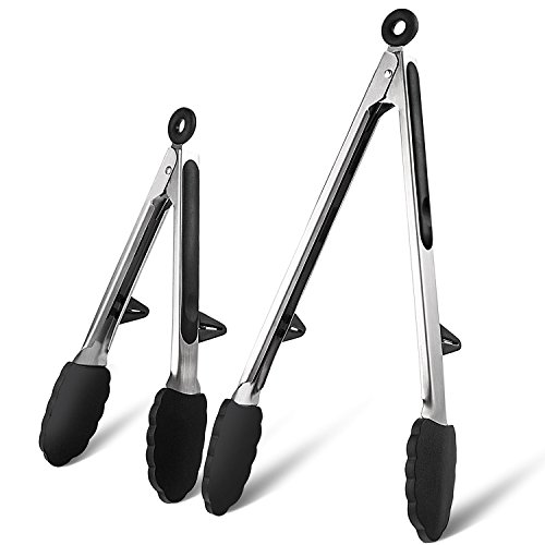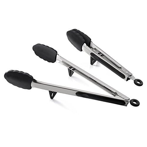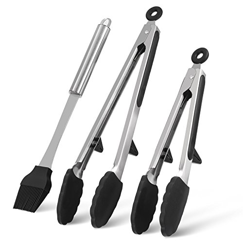 Studio : Hoonay Publisher : Hoonay Product Description Hoonay Stainless Steel Kitchen Tongs set (9"12") are perfect for cooking, and for serving meats, appetizers, salads, and more. -Crafted of heavy duty stainless steel for durability when you flip and turn larger foods. -Extra long handles keep hands away from heat, and feature a lock mechanism for convenient storage. -Non-slip silicone heads won't scratch your cookware and are heat-resistant to 400 degrees Fahrenheit. -Basting pastry brush included. Dishwasher safe. WHY CHOOSE OUR KITCHEN TONGS SET? ^EASIER GRIP^ Easy to manipulate food (lift, flip, and put onto and take off the grill) with precision, perfect for handling any type of food. ^EASE OF USE^ -Comfortable design with well-shaped handles and spring tension that did not cause strain and fatigue; -Extra long and sturdy handles protect our hands far enough from the flames while providing good control and leverage; -A locking mechanism is easy and convenient to operate and only locked or unlocked when we wanted it to do so. ^Easy to clean and durable^ Cleaned up easily, preferably in the dishwasher, and did not become rusty, stiff, overly floppy, misaligned, or otherwise damaged. ^Package Included^ 1x12 Inch grill tong 1x9 Inch grill tong 1x10 Inch basting pastry brush Enjoy 100% RISK FREE Purchase---Click the yellow 'Add to Cart button' above now!! 0