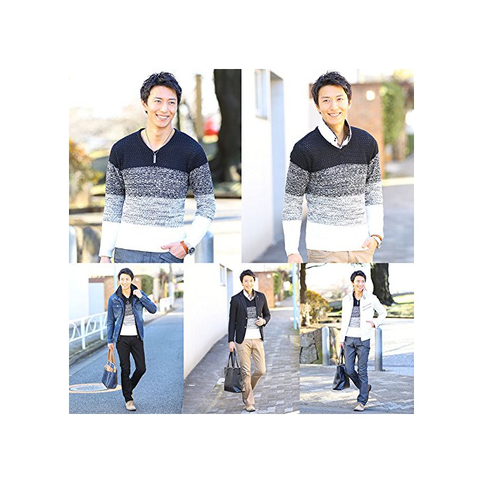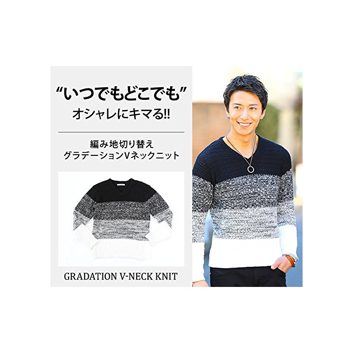 【언제라도 어디에서라도 멋지게《기》《마》#.】뜨기지 변환 그라데이션V넥 니트