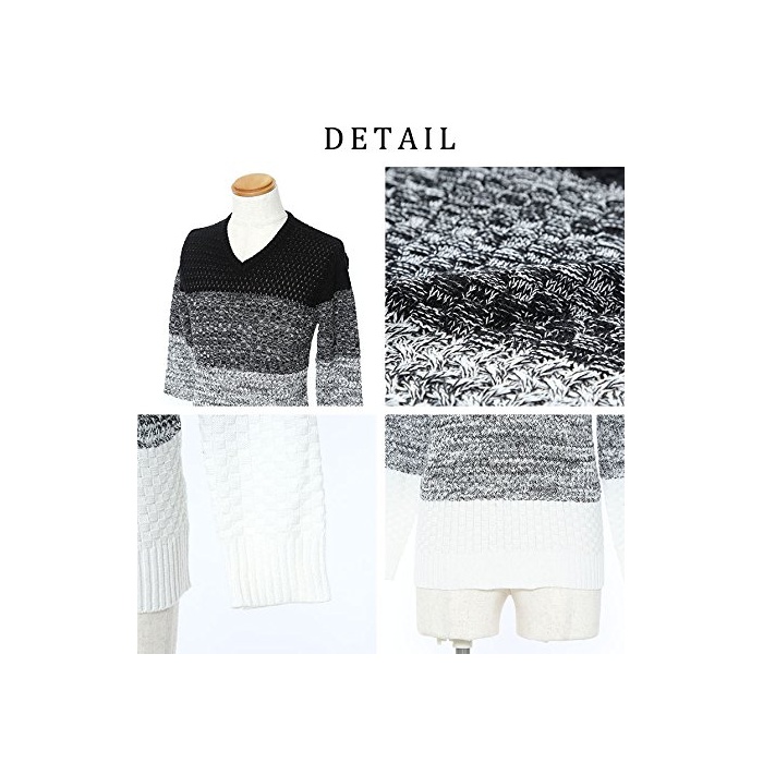 원본상품명: メンズスタイル vネック ケブルニット Mサイズ ブラック×ホワイト