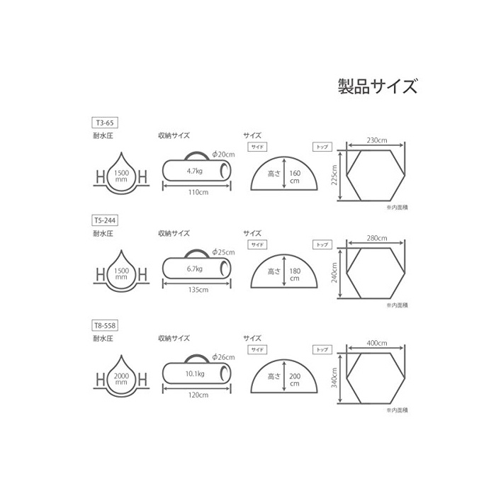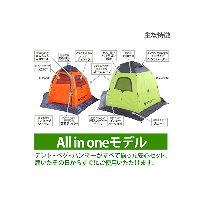 부속품:와이드 스틸 페그(말뚝)x17,스틸 해머x1,스톰 로프,메쉬 씨트,캐리 백,취급 설명서