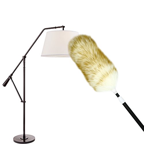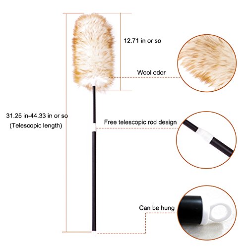 VOIMAKAS Wool Duster, Brown Brush Hair Soft Long Wool Plastic Handle and Extension Pole 44 inches Telescopic Duster for High Ceilings