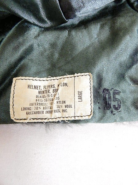 Goods&Antique ブランドBREENBRIER INDUSTRIES カラーセージグリーン メール便不可 コンディション★★ 素材ナイロン/アセテート(半合成繊維)・ウール 表記サイズL スタッフコメントB9Bヘルメットフライヤーキャップ。 ※ 左耳あて後ろに縫製ほつれがありますが、耳あてを上げた状態だとほぼ目立たなくなります。 実寸サイズ 頭周り 61 cm