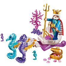 -. Feature : Playmobil 5885 King Neptune and Seahorses / Includes the Neptune figure, 2 seahorses, chariot, treasure chest, and other accessories. / King Neptune figure measures ~ 2.95 inches tall / 31 pieces / Age 4+