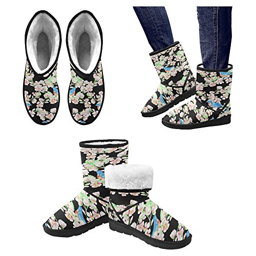 (InterestPrint)/Women's/Boots/DIRECT FROM USA/InterestPrint Women's Snow Boots Unique Designed Comfort Winter Boots Peach Blossom and Birds