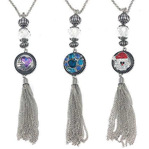 Chunk Snap Pendant Tassel Necklace Decorative Chain 38" Includes Chain and Standard Size Snap … … (Chunk Snap Charm Tassel Necklace Crystal)