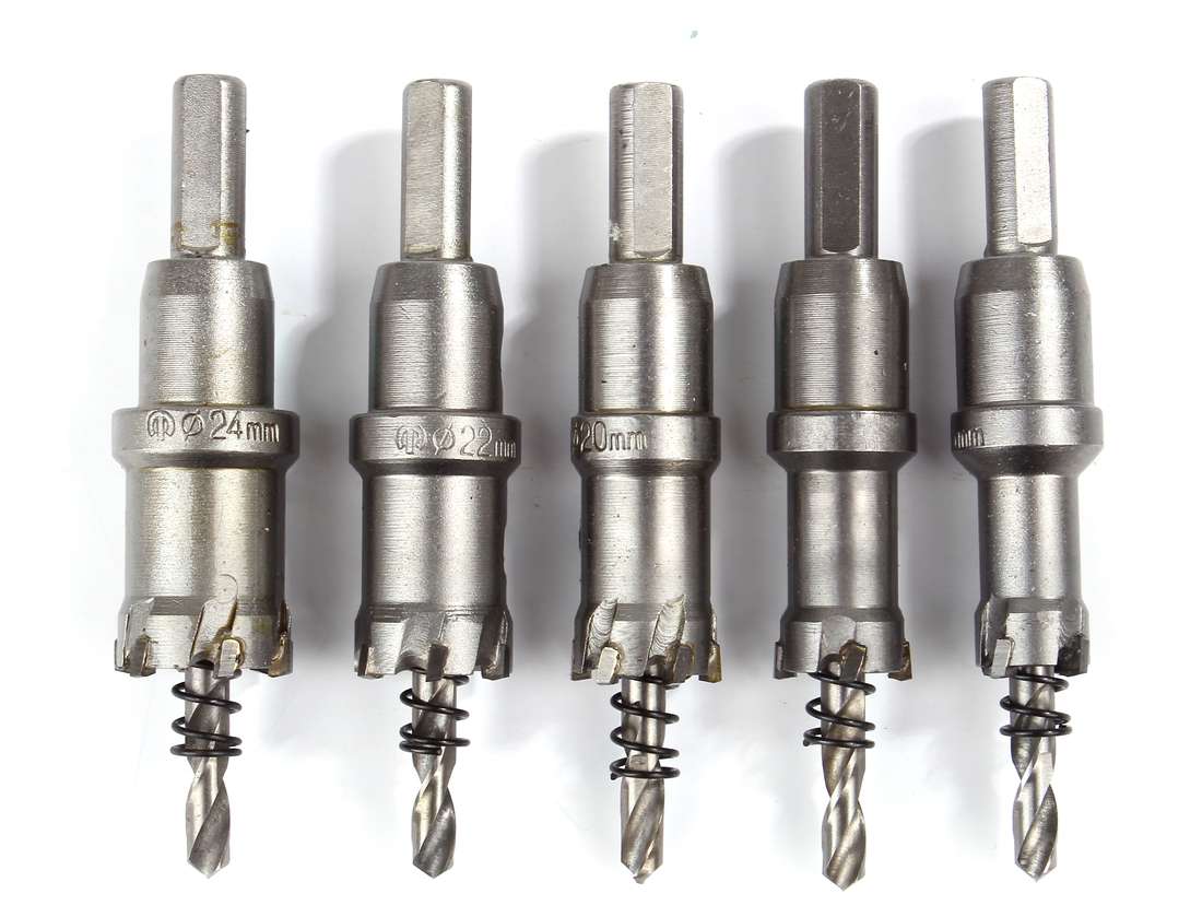 直径16、18、20、22、24mmの金属製ホールソー5点セットです。