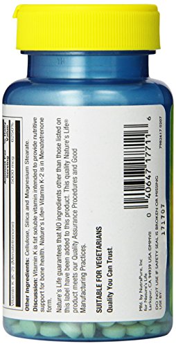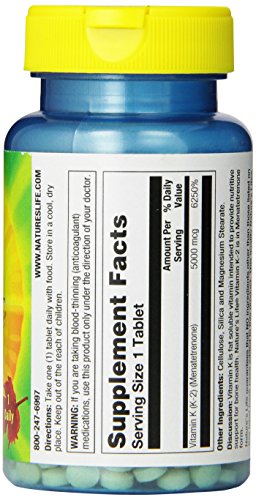 -. Binding : Health and Beauty -. Brand : Nature's Life -. Label : NATURE'S LIFE -. Manufacturer : NATURE'S LIFE -. PackageQuantity : 1 -. ProductGroup : Health and Beauty -. ProductTypeName : HEALTH_PERSONAL_CARE -. Publisher : NATURE'S LIFE -. Studio : NATURE'S LIFE -. Title : K-2 (5,000mcg)