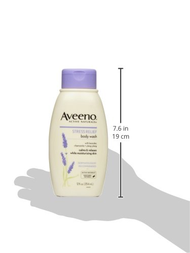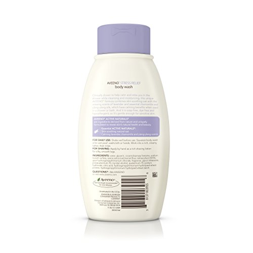 Aveeno Stress Relief Body Wash is clinically shown to help calm and relax you. Gentle even on sensitive skin, it gently lathers to cleanse, help hydrate, and soothe dry skin. The formula includes the calming scents of lavender, chamomile, and ylang-ylang oils. Combined with the soothing properties of Active Naturals Natural Oatmeal, the oils help you unwind. The nourishing formula helps moisturize your skin.Feature