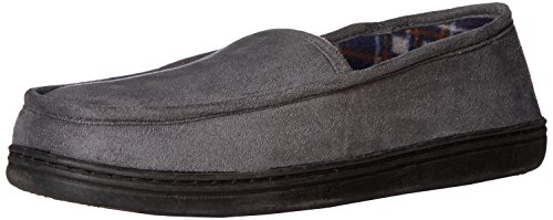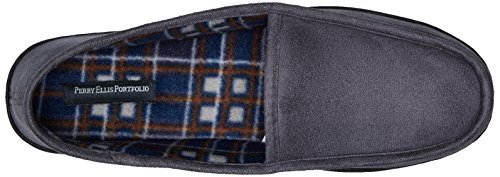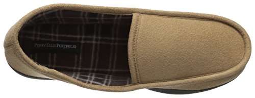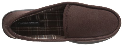 Perry Ellis Men's Microsuede Slipper with Plaid Fleece Lining