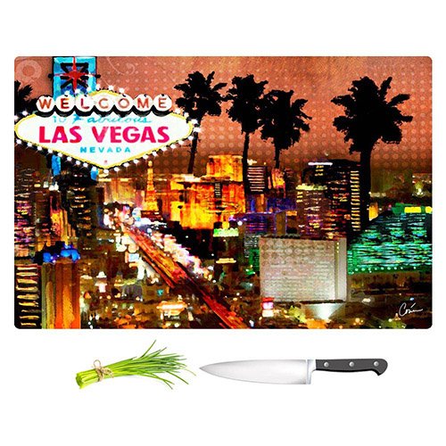 DiaNoche Designs CB-CorinaBakkeLasVeagasSky2 Corina Bakke-Las Vegas Skyline Unique Kitchen Slicing Dicing Bar Artistic Decorative Cutting Boards from, Large 15" x 11"
