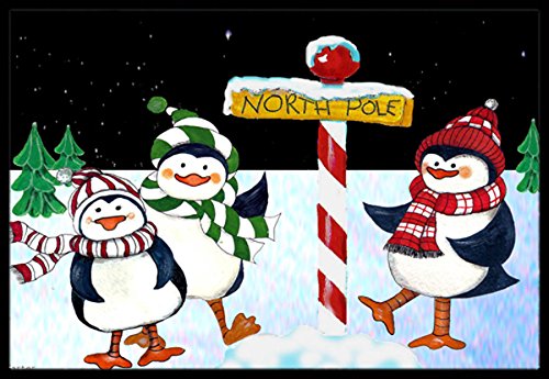 Caroline's Treasures PJC1082JMAT North Pole Welcomes You Penguins Indoor or Outdoor Mat, 24 x 36", Multicolor