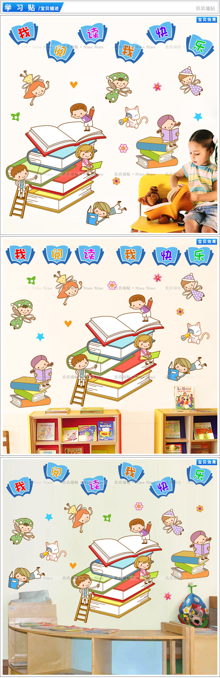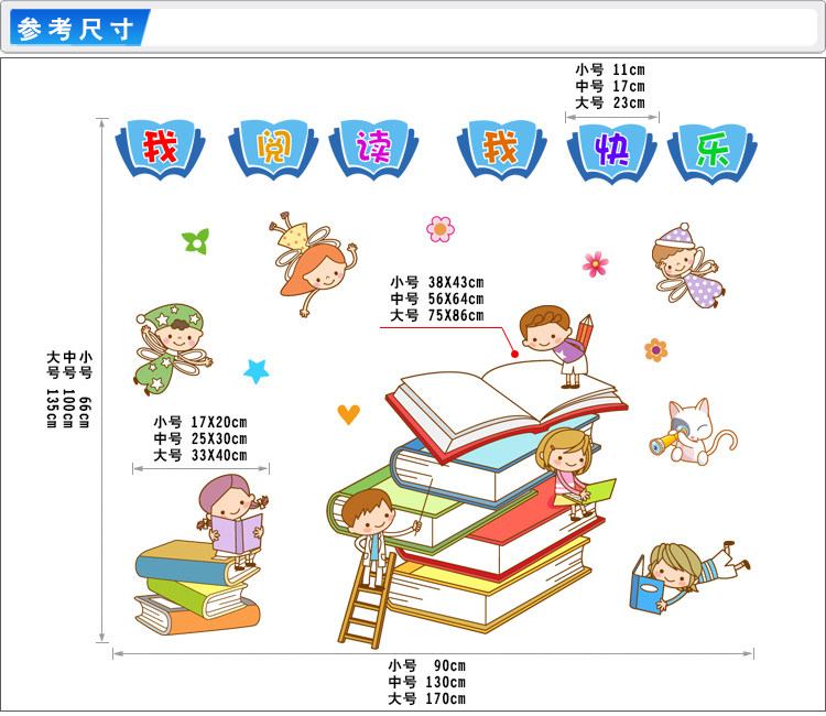 幼儿园小学教室图书角图书馆阅览室墙贴小孩读书学习阅读贴纸贴画