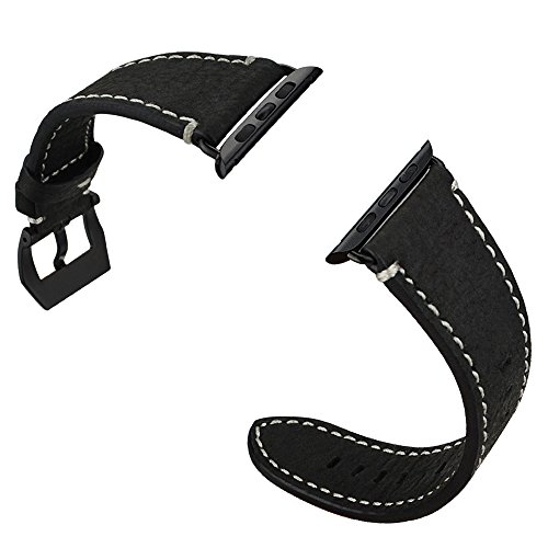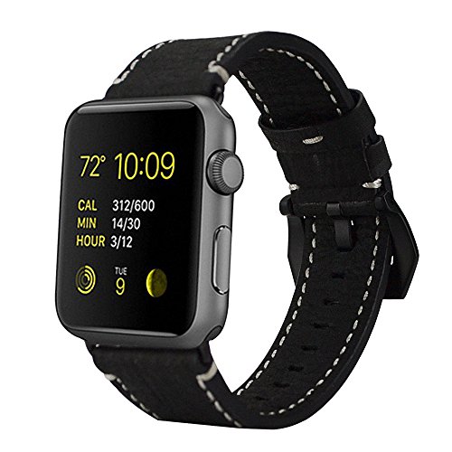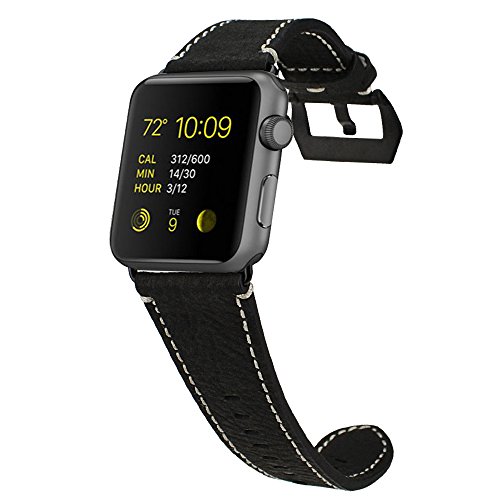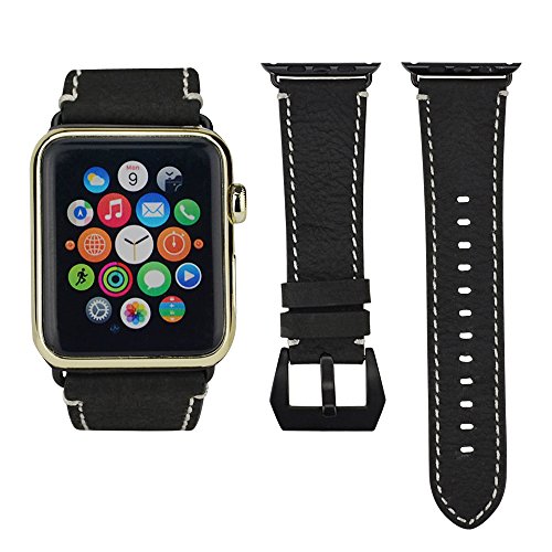 Apple Watch Band, 42mm iBazal Apple Watch Leather Band Vintage Genuine Leather Replacement Band Strap with Black Clasp for All 42mm Apple Watch Series 1 & Series 2 - Classic Black 42mm