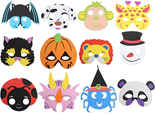 6MILES 12 PCS Assorted Foam Cartoon Animal Masks for Birthday Halloween Party Favors Jungle Dress-Up Costume Cosplay
