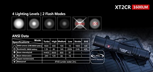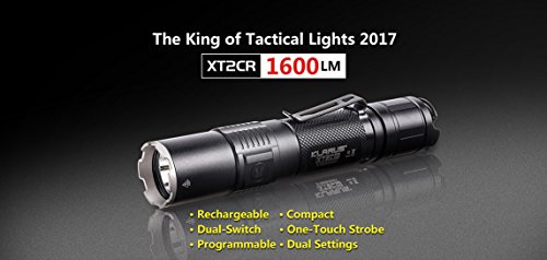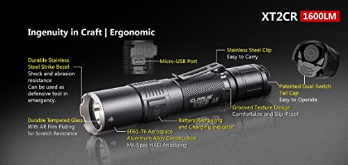 Klarus XT2CR Tactical Flashlight 1600 Lumens, Rechargeable, Programmable, Includes Rechargeable 18650 Battery, and More