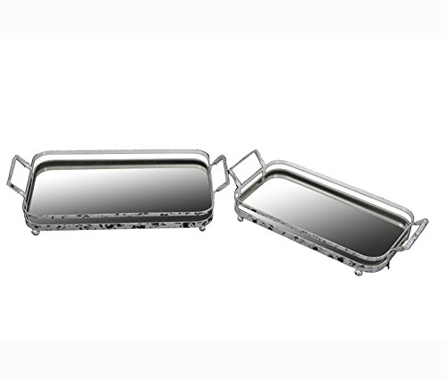 Privilege International 88025 2-Piece Iron and Antique Mirror Trays