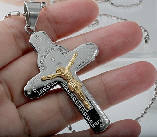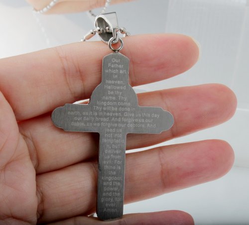 -. Binding : Jewelry -. Brand : R.H. Jewelry -. Color : Grey -. Department : mens -. Feature : High quality stainless steel / Cross size: 2 x 1 1/2 inches / One 60cm (23.5") long fine stainless steel ball chain included / The Lord's Prayer - King James Version engraved / Unique cross for men and women -. ProductGroup : Jewelry -. ProductTypeName : FASHIONNECKLACEBRACELETANKLET -. Title : R.H. Jewelry Stainless Steel Pendant The Lord's Prayer, Crucifixion of Jesus Cross for Men