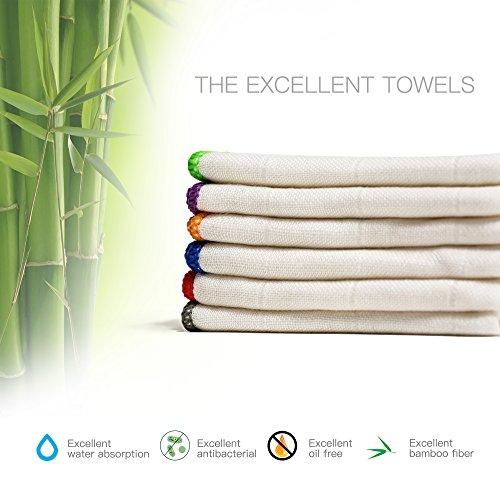 100% Bamboo Washcloths | Eco-friend Microfiber Wash Dish Towels, Super Absorbent Cleaning Towels (6 Pack, 11.8x11.8 inch), More Durable Than Cotton, Hypoallergenic.