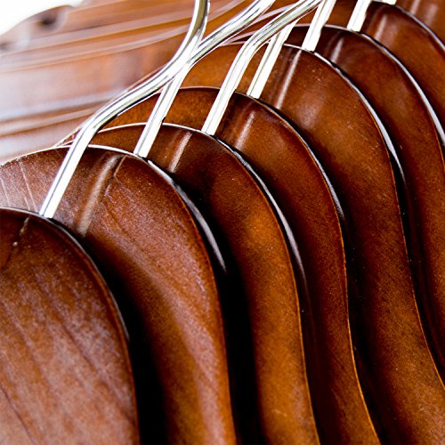 SHOWCASE YOUR CLOSET – Rich light walnut finish which accents the wood grain and a layer of gloss for stylish beauty. They are not just solid painted brown hangers, they are gorgeous works of art.
