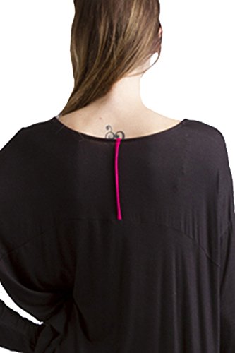 Product DescriptionLadies Rayon/Spandex Long Sleeve Scoop Neck Flare Hem Tunic with Fuchsia Detail on the back Perfect tunic to wear over your favorite shorts or leggings Model is wearing size Small. Model height 5"80