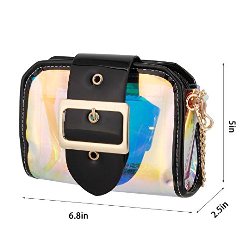 - Size: 6.8*2.5*5 inches(L*W*H), convenient and portable to carry on. A main compartment to hold your phone, cards, cosmetics and other small personal stuffs, smooth zipper and solid magnetic snap closure, detachable chain shoulder strap