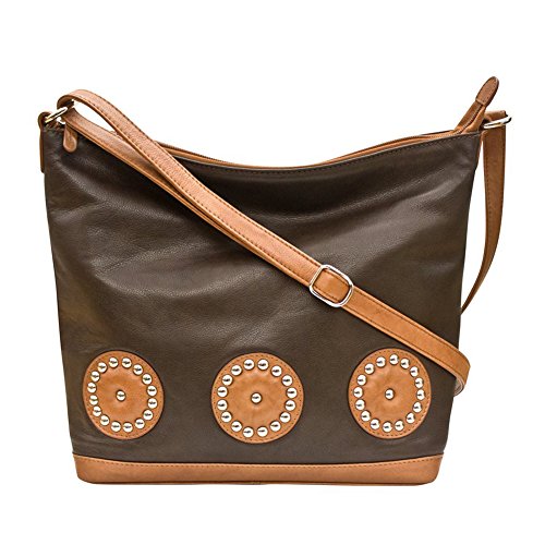 ili 6573 Leather Slouchy zip top hobo (Walnut/Antique Saddle)