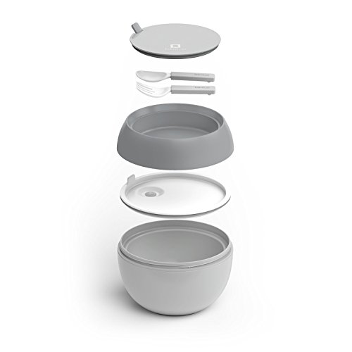 - RETRACTABLE UTENSILS: Includes reusable fork and spoon set that nests in the separate top dish, which also offers ample storage for toppings and bite-size snacks