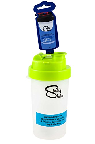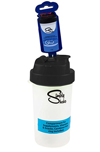 NUTRITIONAL AND SUPPLEMENT MIXER BOTTLE: Bottle comes with carabiner with key ring, flip cap. 2 small compartment to store powder supplement and vitamins, plus a compartment under the cup for fruit, granola, and more.