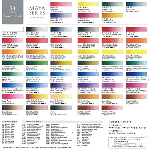 専門家用透明水彩絵具は、全48色のうち35色が単一顔料で作られています。