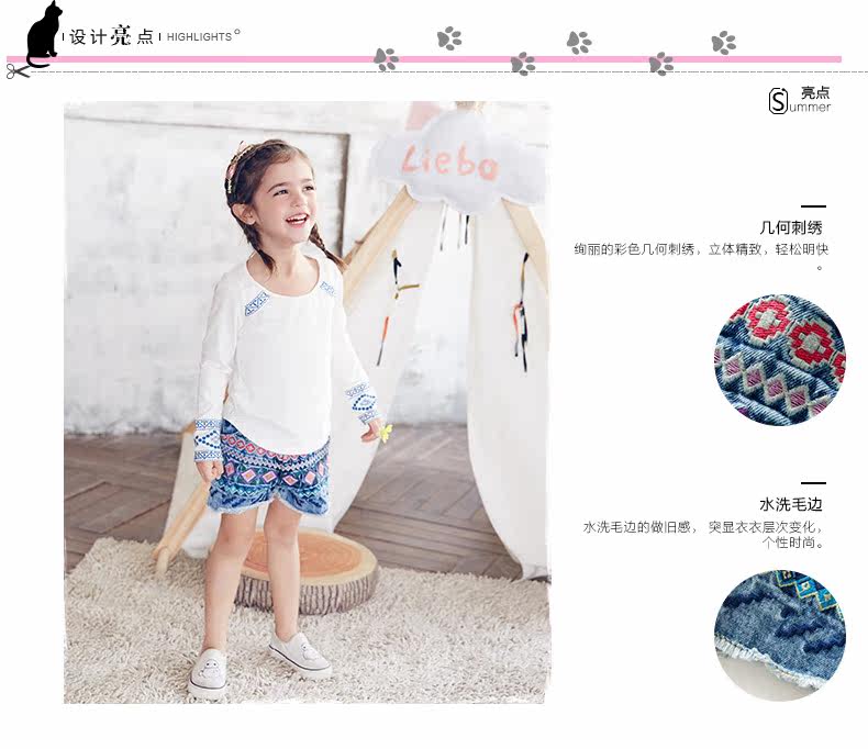 品名/NAME       几何刺绣牛仔短裤