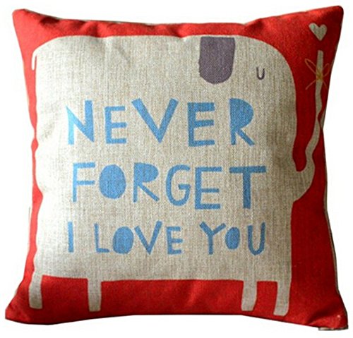 Never Forget I Love You Elephant Cotton Linen Throw Pillow Case Cushion Cover Home Sofa Couch Decorative 18 X 18 Inch (1)