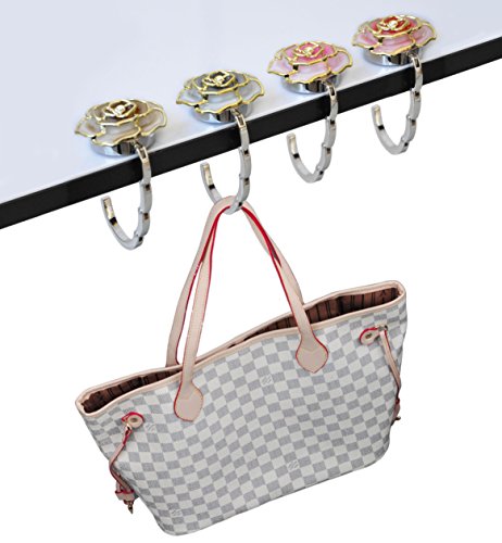 The well made purse hanger is made of metal with sturdy construction, will not slide off with a rubber backing pad, the maximum weight each hook can handle is up to 11.02lb.