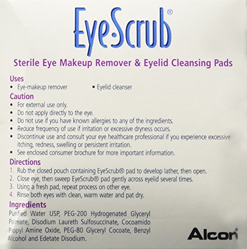 ReleaseDate : 2016-01-19 Studio : Everready First Aid Publisher : Everready First Aid Binding : Health and Beauty Product Description Eye-scrub pre-moistened pads. Convenient, easy-to-use pre-moistened pads. Individually wrapped. Non-irritating. Ph balanced. Ideal for travel. Effective for daily eyelid hygiene. Patented micro bubble formulation. Gentle, soothing, hypoallergenic. Directions: rub the closed pouch to develop lather, then open. Close eye, then sweep pad gently across eyelid several times. Using a fresh pad, repeat process on other eye. Rinse both eyes with clean, warm water and pat dry. Ingredients: purified water usp; peg-200 hydrogenated glyceryl palmate; disodium laureth sulfosuccinate; cocoamido propyl amine oxide; peg-80 glyceryl cocoate; benzyl alcohol; edetate disodium warnings: for external use only. Do not apply directly to the eye. Do not use if you have known allergies to any of the ingredients. Reduce frequency of use if irritation or excessive dryness occurs. Discontinue use and consult your eye healthcare professional if you experience excessive itching, redness, swelling or persistent irritation. See enclosed consumer brochure for more important information. ? 0