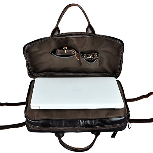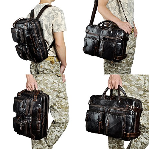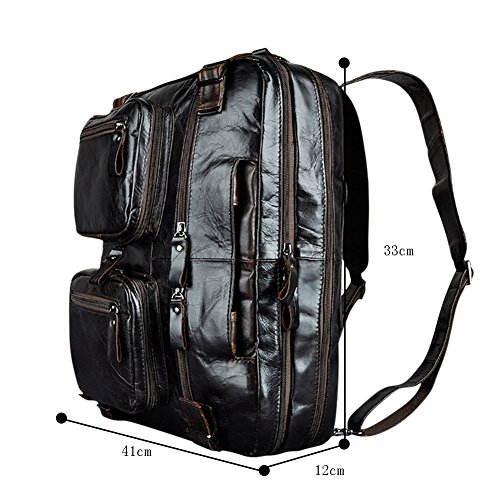 Product Description This is Genda 2Archer Mens 14-Inch Laptop Backpack, Leather 3-in-1 Multifunction Briefcase Business Shoulder Handbags. It's very portable and you can put your laptop,Ipad,umbrella,books,clothes,phone,etc. It's a high-quality and cool bag. Please note that the color of the actual item may be slightly different from the photos due to lightings and other factors. And please make sure the size of the bag is OK for you before placing the order,thanks. Product Specifications: Material: 100% Genuine leather Size: 41*12*33 cm / 16.1*4.7*13.0 inches, fits 14 inch laptop easily Color: Coffee 3-in-1 multifunction: can be used as tote bag, shoulder bag, or backpack depending on need and carrying preference Special: The back shoulder straps can be hidden when using as handbag/shoulder bag Usage: Perfect idea for daily use at school, work, weekend, holiday, travel, gym, hiking, biking, etc